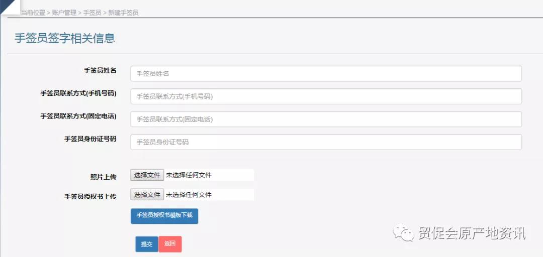 4.登录成功之后,点击“新建手签员”,填写相关信息,下载手签员授权书填写后提交。