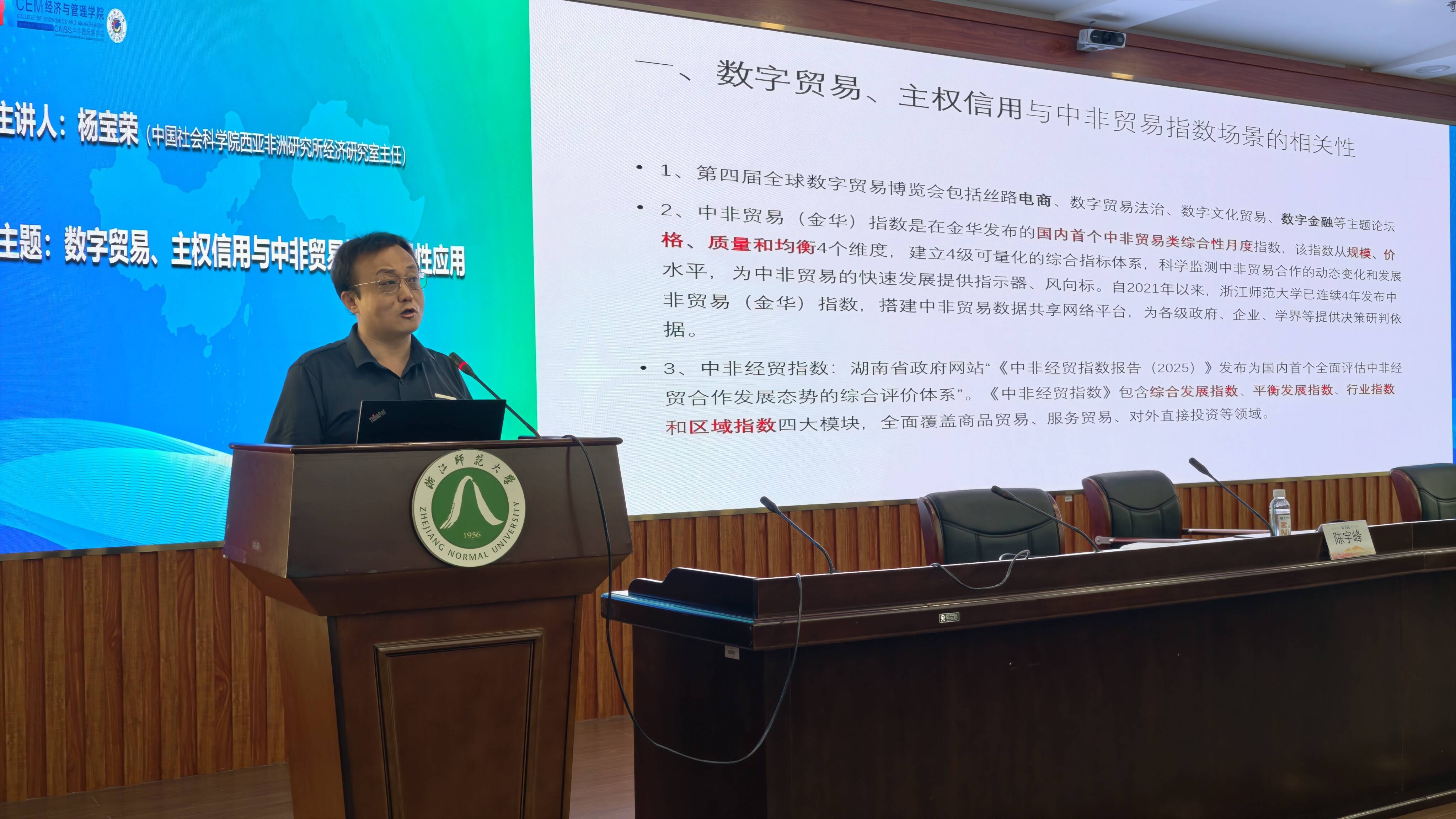 9月27日下午,首届全国中非贸易指数学术研讨会在浙江师范大学正式拉开帷幕。此次会议作为全国首个专注于中非贸易指数研究的学术盛会,吸引了来自中国社会科学院、清华大学、上海对外经贸大学、河北工业大学、湖南农业大学等高校科研院所的专家学者,以及政府部门、社会组织和企业代表共计百余人参与,共同围绕中非贸易指数的深化与应用展开深入研讨。