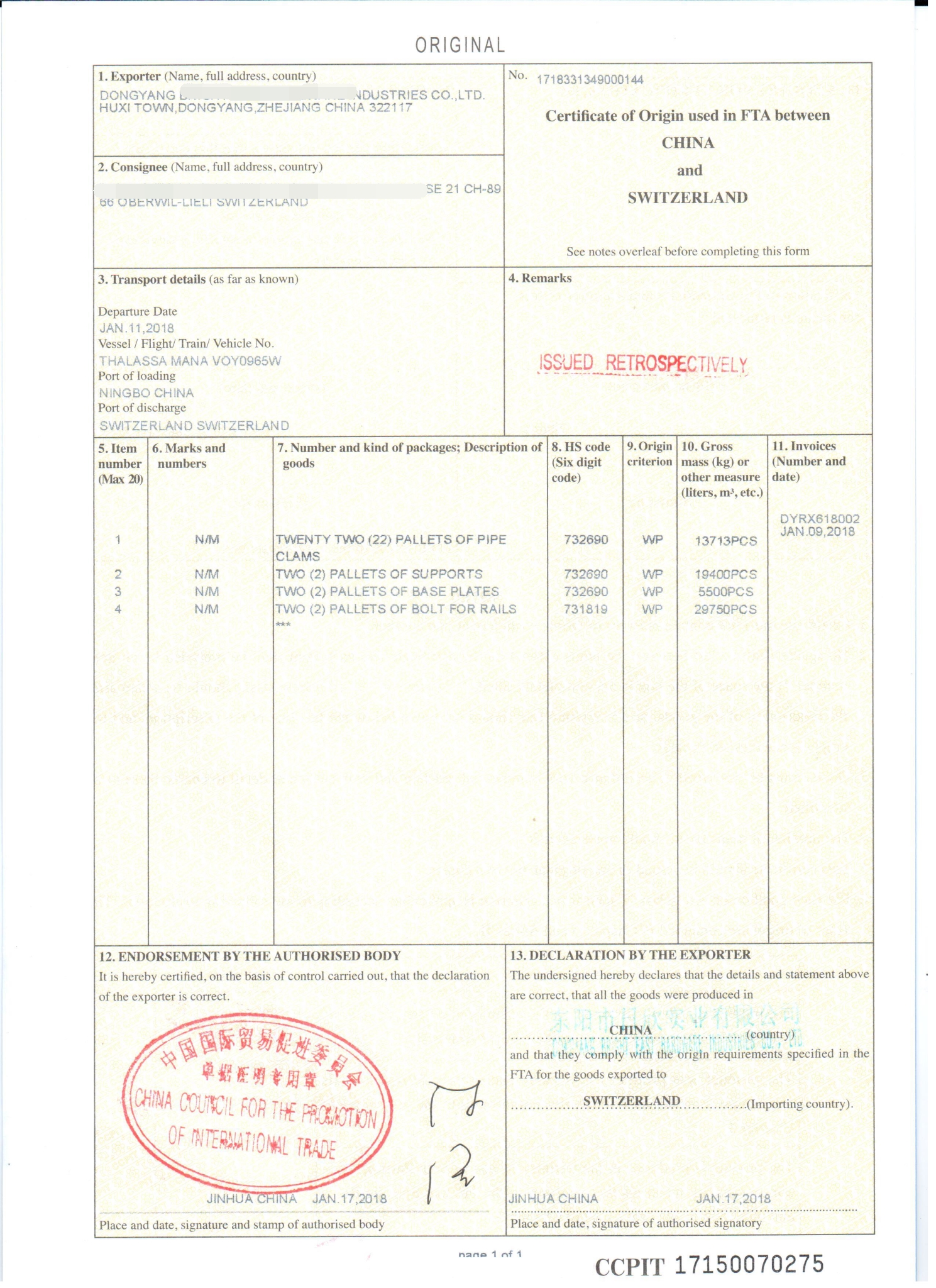 优惠原产地证样本