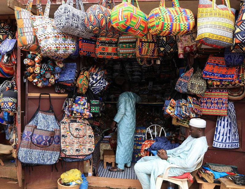 这是2023年9月16日拍摄的喀麦隆雅温得手工艺品市场一家店铺。新华社记者董江辉摄